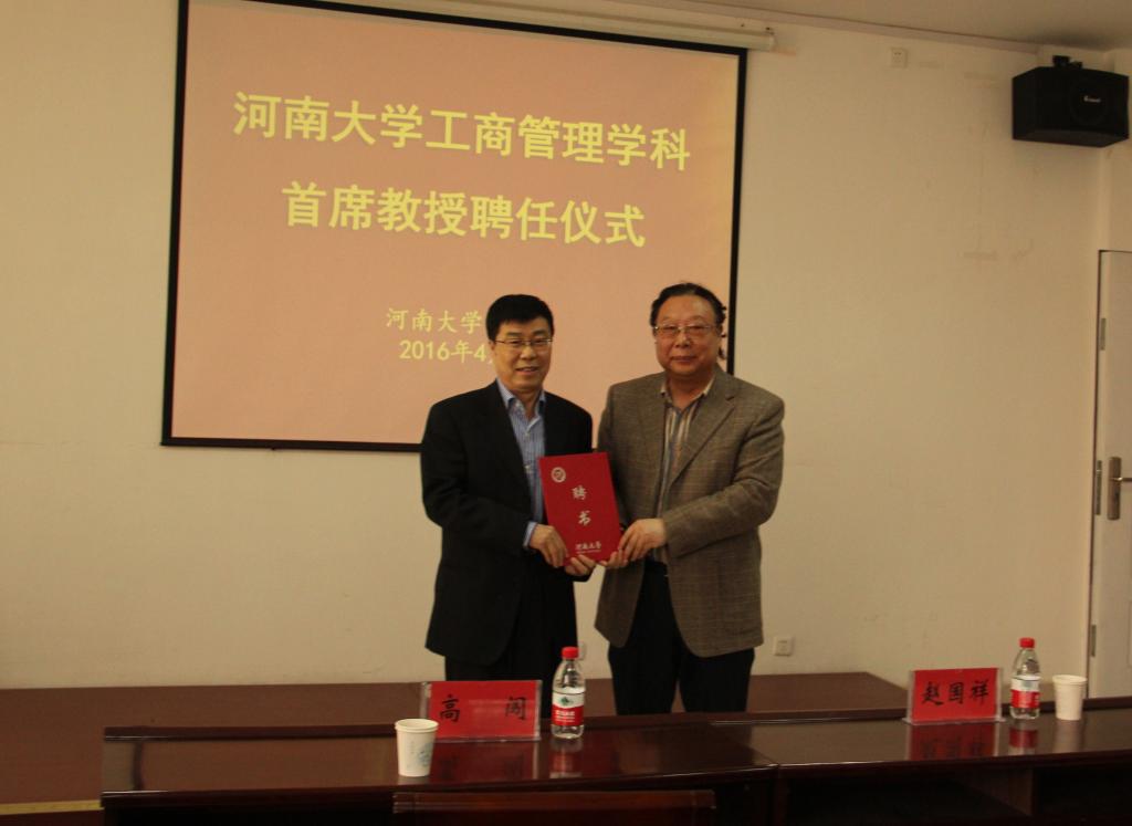 4月1日上午,河南大学工商管理学科首席教授高闯聘任仪式在bet36娱乐场一楼报告厅举行,校党委常委、副校长赵国祥,校人事处处长尚富德、bet36娱乐场全体领导班子及师生代表参加了仪式。仪式由bet36娱乐场院长王性玉主持。? ? ? ? 人事处处长尚富德介绍了高闯教授的基本情况,赵国祥对高闯教授受聘我校表示欢迎,并为高闯教授颁发聘书。赵国祥代表学校感谢高闯教授[详情]